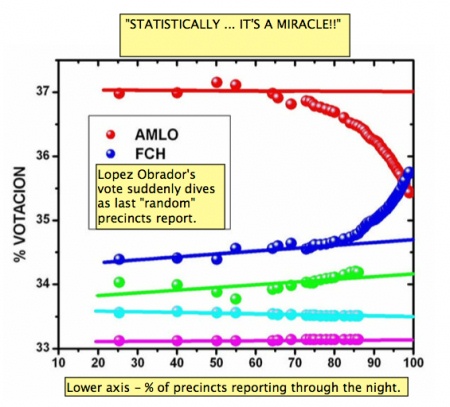 For all the faults of the GOP, you have to give them credit for knowing how to follow a winning strategy. Unfortunately, that winning strategy involves stealing elections. It's not hard to suspect that is what's being planned in California, the biggest state in the USA. On March 2005, Kevin Shelley, the Golden State's Secretary of State, resigned from office under threats of criminal investigation and a cloud of supposed scandal. A year and a half later, he still hasn't been charged with a single crime, which supports the belief he was hounded from office in a politically motivated vendetta. The reason? Shelley, a Democrat, was a leading force against electronic voting, decertifying the usage of certain machines, demanding a verifiable paper trail for all electronic machines in use and launching an investigation of machine manufacturer Diebold for criminal prosecution. (In an October 2002 interview with Konformist editor Robert Sterling, which perhaps sparked Shelley's concern over the issue, a Shelley camp rep conceded if someone like Katherine Harris was in charge of insuring the integrity of electronic voting machines, "We'd be screwed.") His replacement, appointed by the specially-elected Governor Schwarzenegger after the ouster of Gray Davis, is Arnold's fellow Republican Bruce McPherson, who unsurprisingly (in true Kat Harris-Kenneth Blackwell style) recertified the Diebold machines, publicly opposes a paper trail for electronic machines and has launched a computerized "Voter Registration Database" for new voters (who are more liberal than previous voters) that rejected 43 percent of all LA County applicants through March 15 of this year. Meanwhile, temp-worker Stephen Heller leaked to reporters transcripts of audiotapes he received from Diebold lawyers, in which they admitted the company violated a $12 million contract with the state by changing its voting machines software. His reward: prosecution by right-wing Republican Los Angeles District Attorney Steve Cooley, for theft (though he stole nothing) and violation of attorney-client privilege (though he isn't an attorney.) As for Diebold itself, it has yet to be prosecuted, though it did pay $2.6 million to settle the lawsuit (filed by Shelley) charging it had given false information to the state about the security and reliability of its machines (less than a quarter it received in the contract Heller provided whistle-blowing evidence on.) Diebold, coincidentally, is a heavy contributor to the Republican party. Then again, perhaps the charismatic Schwarzenegger and the pseudo-incumbent McPherson can win their November elections legitimately, despite the overwhelmingly Democratic Party leanings of California voters (the Democrats swept all eight state offices in 2002.) But if they and other Republicans win dubious "victories" in 2006, you heard of 2006 Votescam in California at The Konformist first... Of course, the GOP isn't just interested in using votescam within its borders. In Mexico (or, as it is known as by the California Reconquista, Aztlan South) vote fraud is the hottest new export from the USA, alongside industrial jobs. As usual when election chicanery is involved, muckraking journalist Greg Palast was the first to warn of the attempt to steal the Mexican presidency - two days before the election had even taken place. In retrospect, it shouldn't have been too surprising. The battle between the Bush-friendly Felipe Calderon (The Konformist Beast of the Month) of the conservative National Action Party (PAN) and Andres Manuel Lopez Obrador of the leftist Democratic Revolutionary Party (PRD) was one that had ramifications across the Latin America. A Lopez Obrador victory would follow a string of leftist ballot conquests in the region this decade, including Argentina, Bolivia, Brazil, Chile, Peru and (most notable of all) Venezuela under Hugo Chavez. Indeed, it is likely that any Bush Team concern over the results in Mexico was less about Mexico itself and more about Chavez. Chavez, after all, has bashed the made-in-the-USA Free Trade Area of the Americas (FTAA) plan as another failed neoliberal trade agreement that would gouge the Latin American masses, and instead has pushed for a Latin American union to both enrich the region and counterbalance the power and influence of El Norte. A leftist victory in Mexico, right next to the United States border, would make Chavez's plan all the more likely to succeed. (For his part, Lopez Obrador had promised to renegotiate NAFTA if he won the Presidency, and used as his campaign slogan "For the Good of Everyone, the Poor First.") Let's give Calderon some credit: after widely trailing Lopez Obrador in March, he engaged in good ol' fashion mudslinging that, while not on the level of the John Kerry swiftboating, would nonetheless do Lee Atwater proud. Calderon decided to "go negative" in commercials and portray his opponent as a demagogue (just like Mr. Chavez, of course) who would bring back hyperinflation and currency devaluations. As with the Kerry swiftboating, the strategy worked by feeding middle class fears, and made the race a competitive one. Still, as Greg Palast noted, an exit poll by the Instituto de Mercadotecnia y Opinion (with sample data of 80,000 voters) tallied Lopez Obrador as the victor of the race. As Konformist readers would know, exit polls are the most accurate kind of poll, and any results which don't match exit poll results should logically be met with suspicions of fraud. Which leads to the logical suspicion of the results in Mexico. On July 2, the preliminary results of the election were announced, with Calderon winning 36.38 percent of the vote to Lopez Obrador's 35.34. The official count, begun on July 5 and ending the following day, was even closer, with Calderon winning 35.89 to 35.31. The cumulative tallies of the votes make the results even more suspicious: with more than 90 percent of the votes counted, Lopez Obrador still had a one point lead in the r