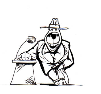 The election takes place. In an extremely tight race, MkDubya appears to have a dubious lead over Smokey, which MkDubya protege Malibu Kate tries to quickly certify. ![]() The Smokey the Bore's camp demands a recount and a revote. They call for an impartial investigation by the FBI. In a panic, MkDubya behaves like he has already won the election. His cake-makeup covered faced begins breaking out with boils. Kirby smells something, and with his friends, begins to investigate. How will it turn out? You'll have to wait and see, via the first issue of Konformist Komix!! ![]() |